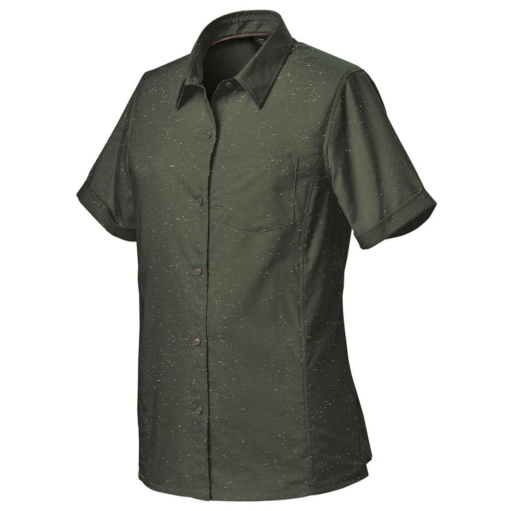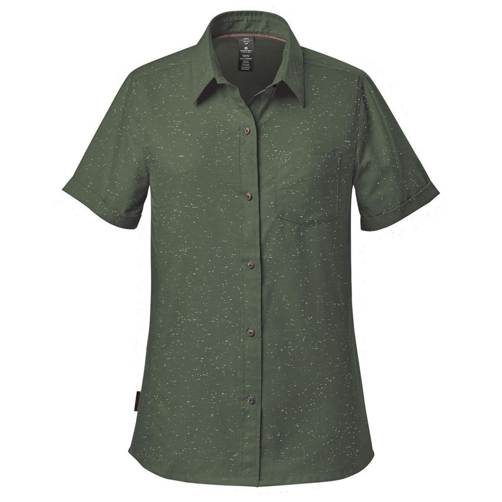 Your team will look crisp and classic when they're wearing a Stormtech Women's Earth/White Skeena Short Sleeve Shirt that includes your company's custom logo or design. A lightweight, heathered slub fabric gives it an effortless feel and a timeless look that is only elevated by exceptional extras like coconut buttons and a contoured hemline.