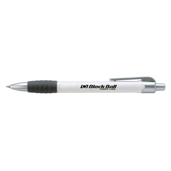 Add character to your promotional campaigns with the Hub Pens White/Grey Palmiro Pen available in vibrant trim colors. It features a push-action retractable mechanism and embodies a white barrel that will show off your company's logo or name loud and clear. Ribbed grip ensures lasting comfort while you're tracking the events that happen in a day.
