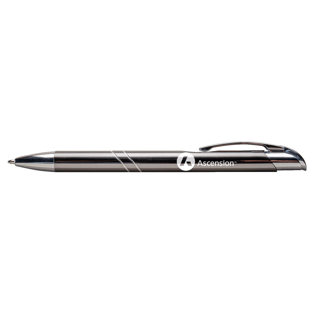 Get to the point with the Hub Pens Gunmetal Top Cat Pen that doesn't mess around. Fashion-forward gloss enamel teams up with silver to add just the right amount of voguish flair to your company's corporate gifting campaign. Push retractable pen equipped with innovative push retraction cap.
