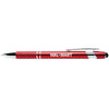 Rugged metal protects the ink cartridge on the Hub Pens Red Textari Stylus from damage caused by frequent drops from office desks and tables. The metal construction of the pen also generates a sleek appearance that will turn heads at corporate events. Take advantage of the head turning by attaching your corporate logo to the large upper barrel. The ideal promotional gift contains a brushed satin finish and silver accents that create an executive appearance for the pen. Use the soft stylus to write messages on electronic devices such as an iPad or mobile tablet, without having to worry about scratching the sensitive touchscreen surface.