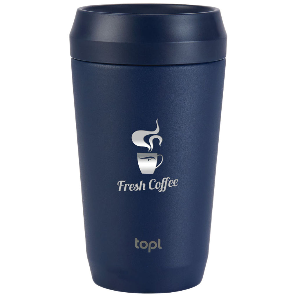 The TOPL Navy 12 oz. Double Wall, Recycled Stainless Steel 360° Tumbler is a sleek corporate hydration option. Made with recycled materials and vacuum insulated, it keeps drinks at the ideal temperature. The 360° sip lid offers convenience, making it perfect for offices, trade shows, or sustainable brand promotions.The minimum order for this product is 12 pieces.