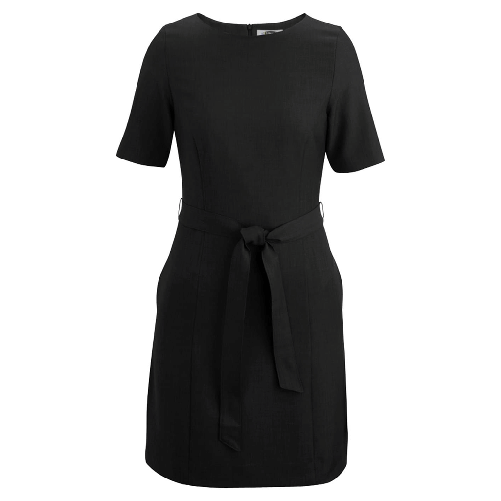 Look and feel great in an Edwards Women’s Black Synergy Dress. This traditional fitting dress with seam pockets and a hidden back zipper has short sleeves and a jewel neckline for a classic look. The self-fabric tie belt adds versatility to the dress. Perfect for severs, hostesses, and caterers for high end events. Order today.