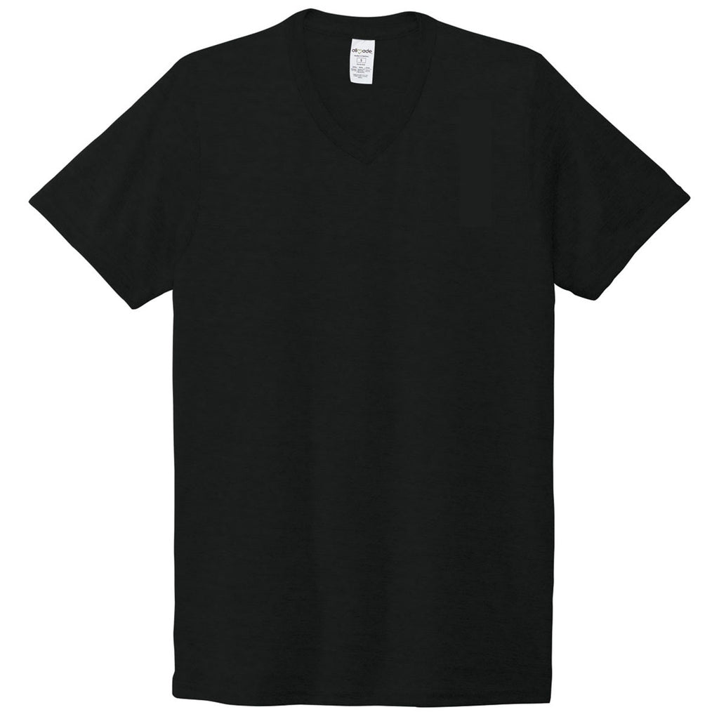 Everyone can enjoy a custom Allmade Unisex Deep Black Tri-Blend V-Neck Tee. This simple tee is a must have when it comes to logoed apparel. This extremely soft sustainable tee that is made of 4.2 ounce 50% Repreve polyester from recycled plastic bottles, organic US grown cotton and Tencel Modal singles for an eco-friendly look that will stand the test of time. Add a custom screen print in your design to use as employee apparel that is part of a sustainable clothing line or simply to show how green you can be with recycled apparel.