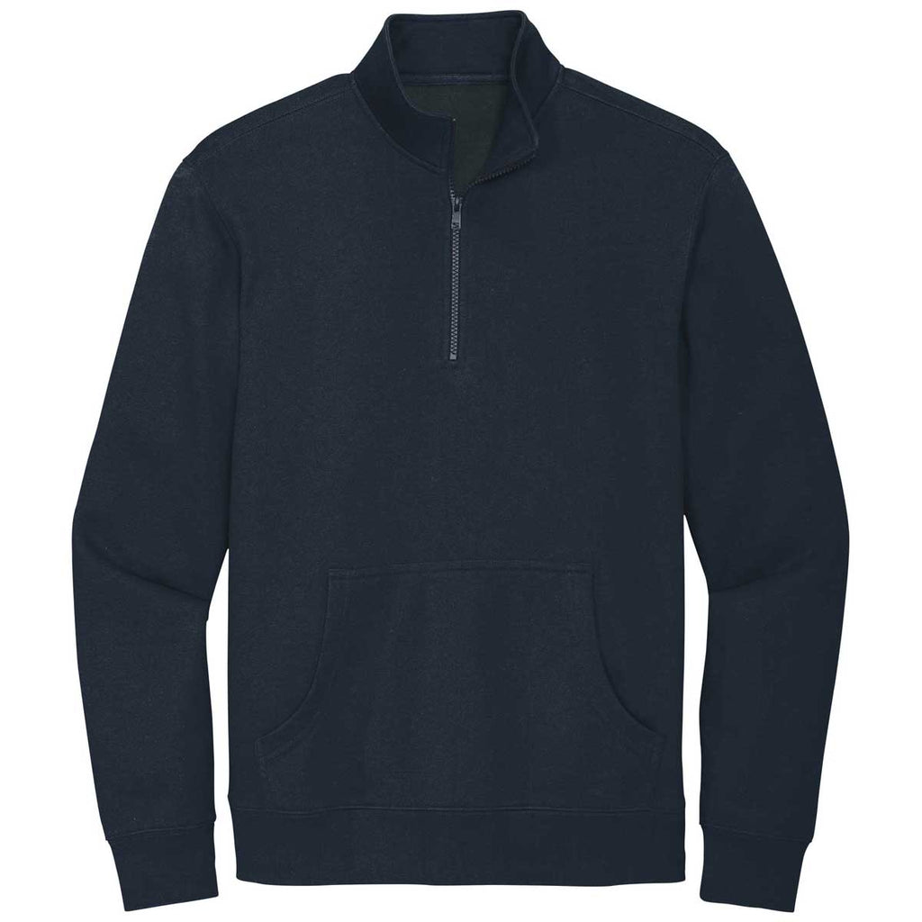 Add embroidery to the District Men's New Navy V.I.T. Fleece Quarter Zip for a clean, casual look that can go almost anywhere. Created from ring spun cotton and polyester fleece, this 1/4-zip is soft and comfortable for all day wear. Add a company logo to use as an employee gift or as incentive to visit a booth at a trade show or event. In many professions, this can be used as employee apparel that helps workers be recognized and associated with your company.Highlights