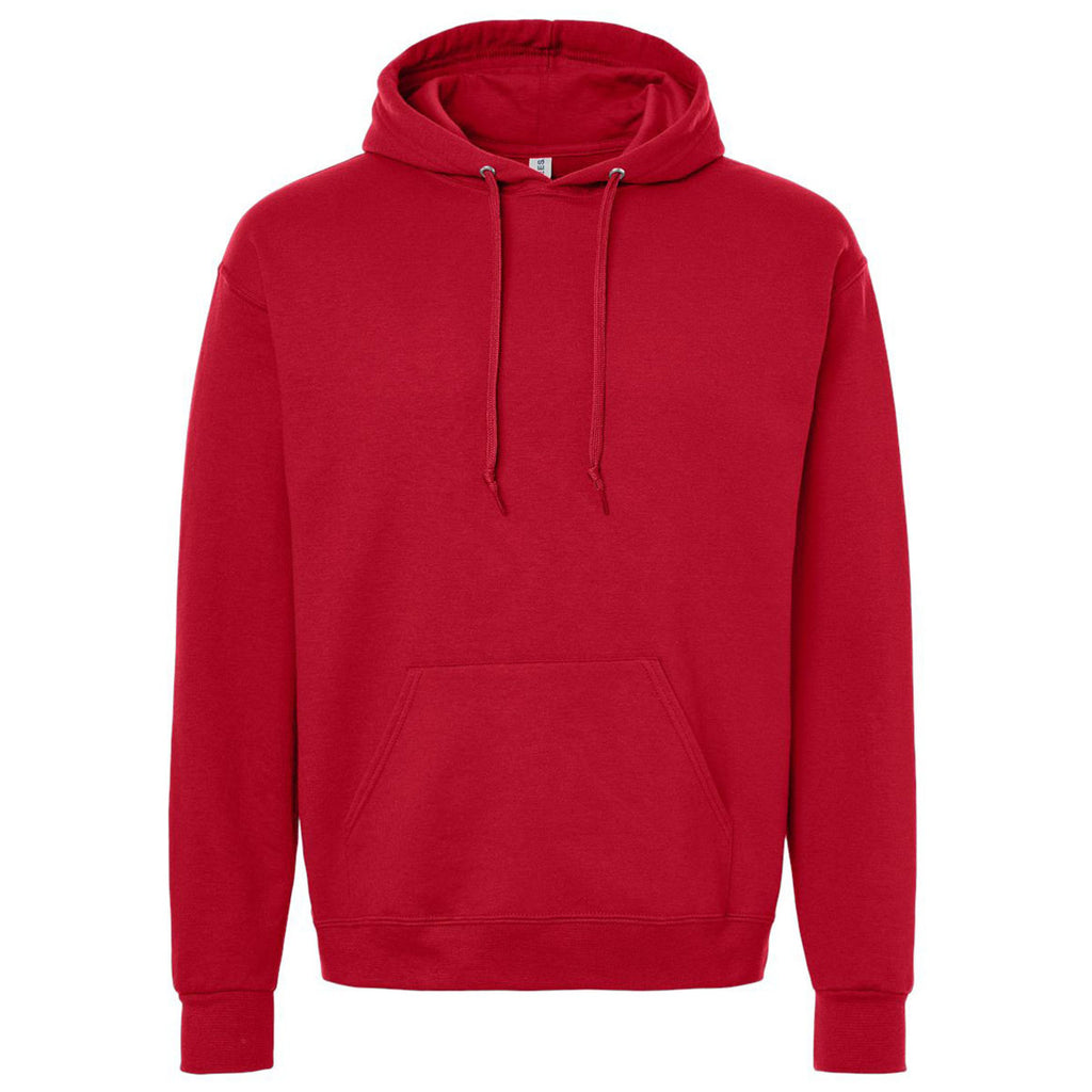 Cozy and versatile, the Jerzees Unisex True Red Ultimate CVC Hooded Sweatshirt is made with a premium cotton-blend fleece that resists shrinkage and pilling. Ideal for corporate giveaways or custom apparel collections, it delivers a relaxed fit and modern silhouette. Great for layering, lounging, or repping your logo in comfort.Highlights