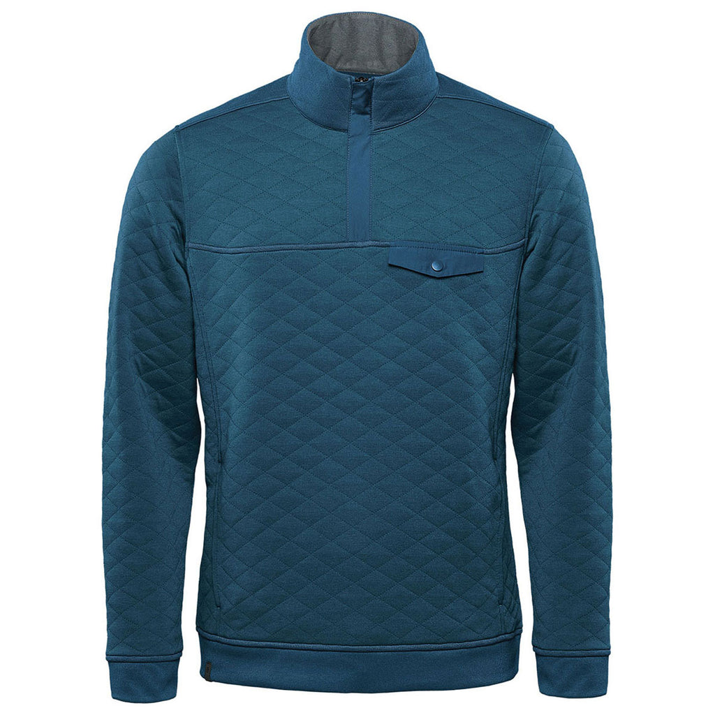 Stay warm and toasty in a custom embroidered Stormtech Men's Steel Blue Montebello Thermal 1/4 Zip Pullover. With the weather being unpredictable this gorgeous quilted pullover will have you ready no matter what comes. The easy to layer pullover has full coverage collar and contoured style lines that add flair to the functionality. Ideal for those who work both indoors and out when a company logo is added or try out a custom design to add to your logoed apparel line. This simple pullover looks stylish, but creates an easy wear look. Place an order right away so these are on shelves as soon as possible.