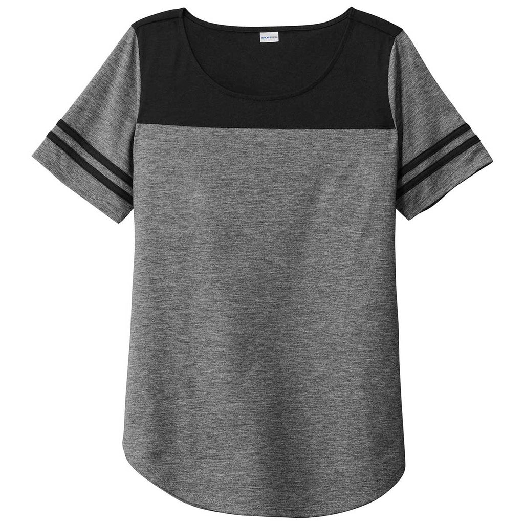 Sport-Tek Women's Black Triad Solid/Dark Grey Heather PosiCharge Tri-Blend Wicking Fan Tee