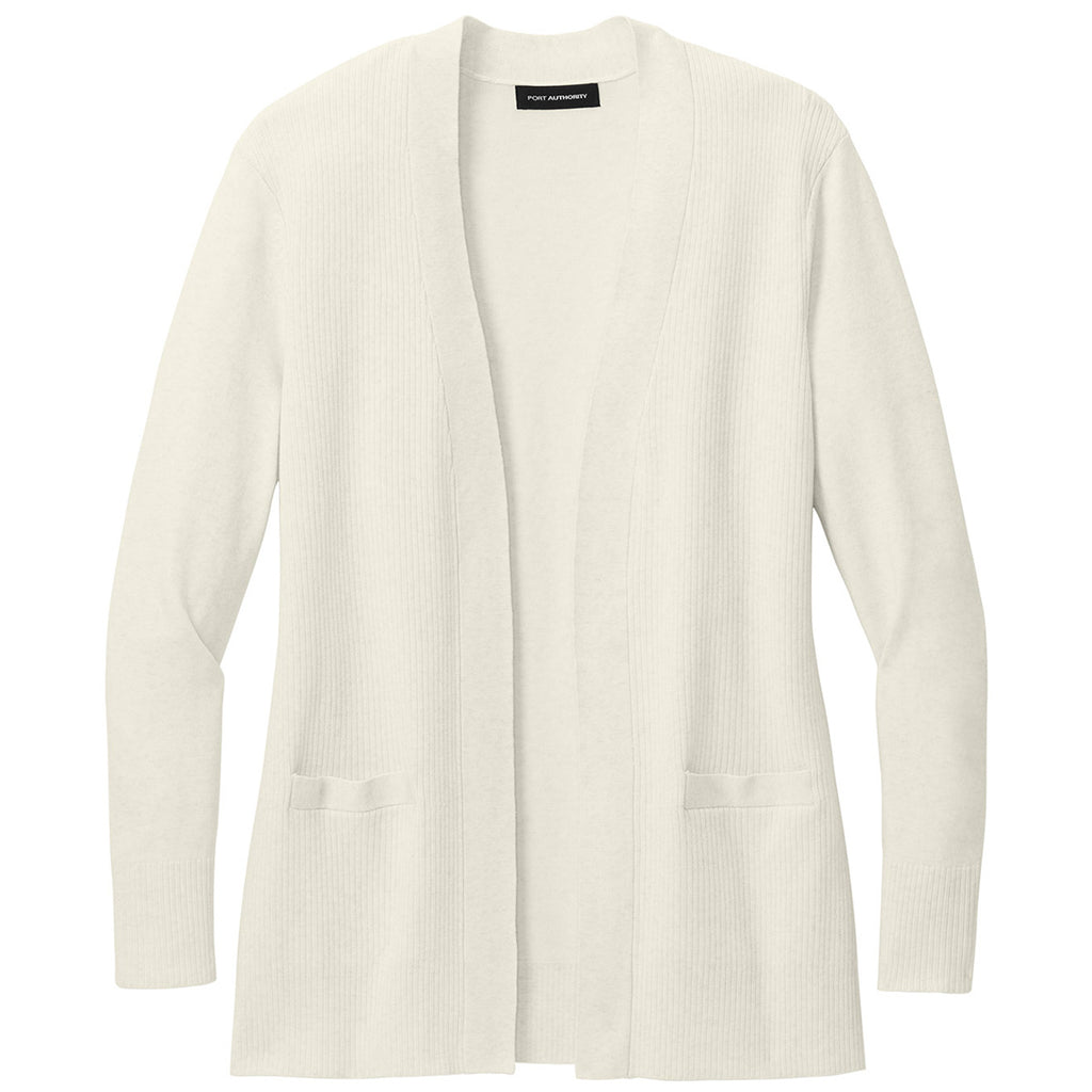 Port Authority Women's Oatmeal Heather Easy Care Open-Front Cardigan Sweater