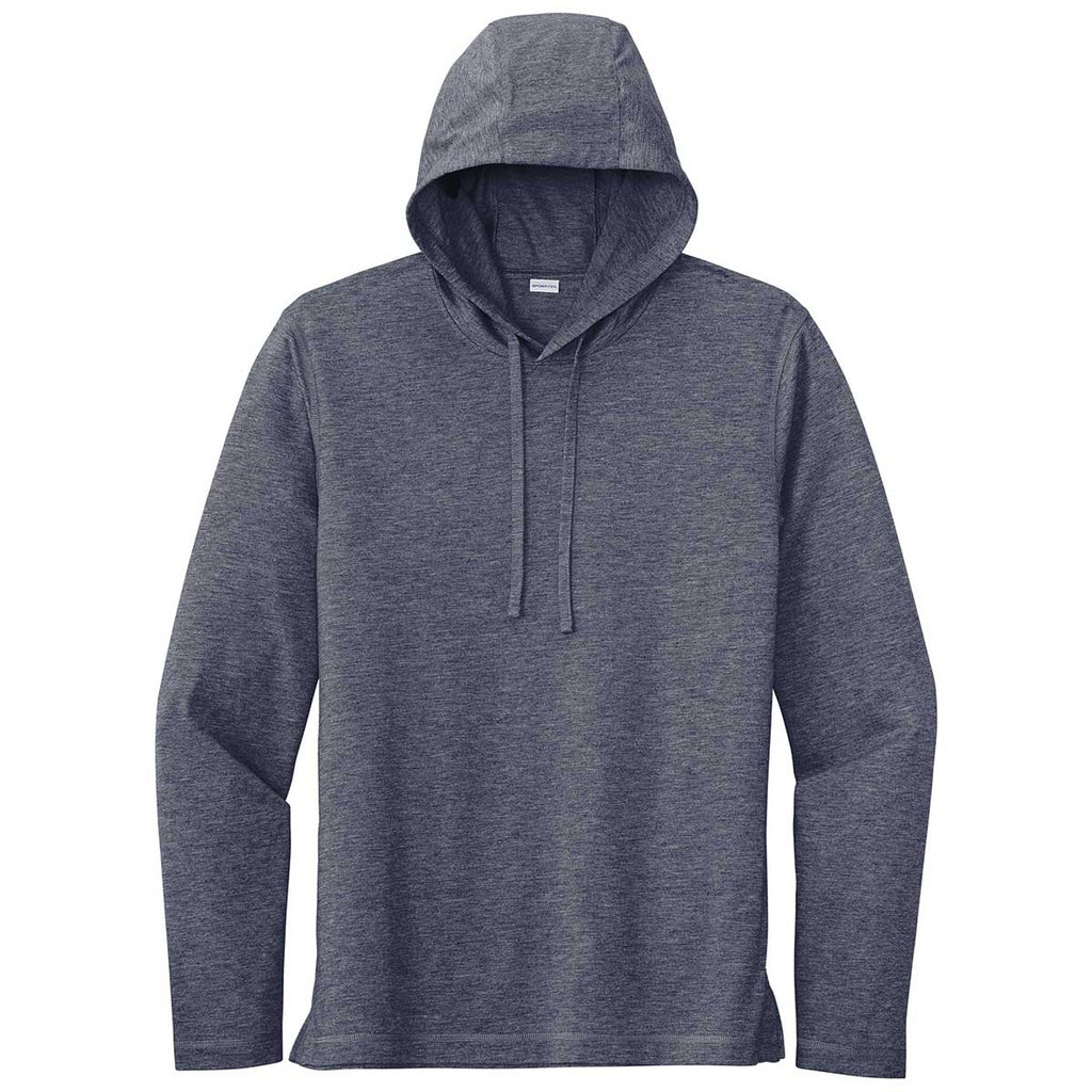 Sport-Tek Men's True Navy Heather Posicharge Tri-Blend Wicking Long Sleeve Hoodie