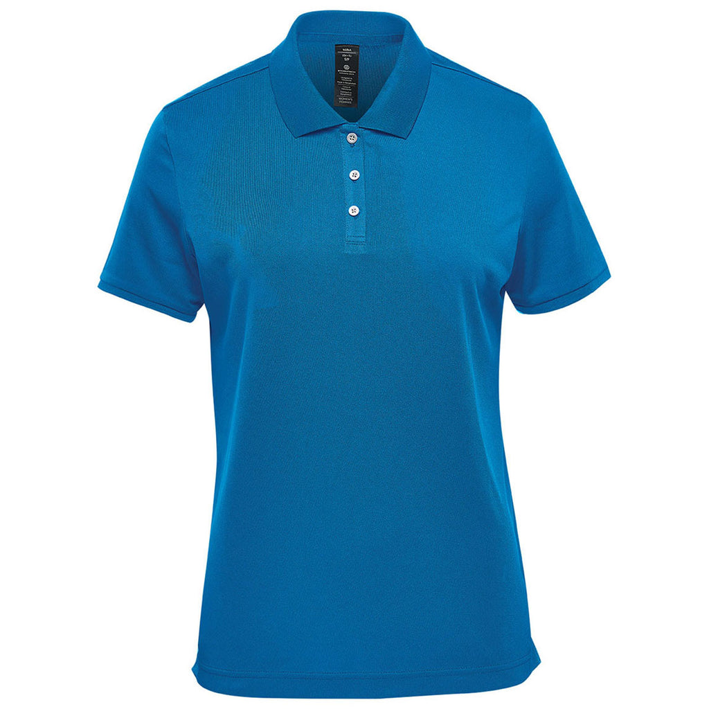 Look and feel great in the Stormtech Women's Azure Blue Sirocco Sports Polo with embroidery in your custom design. This polo provides a high quality look but is built to last with durable polyester pique and moisture management to help maintain comfort. Add a company logo to use as uniforms for those interacting with customers or pair with a jacket to utilize as corporate apparel. The athletic silhouette of the polo makes it great for after game interviews and meetings with those in charge. Place an order today to make sure these polos are part of your logoed apparel line.Highlights