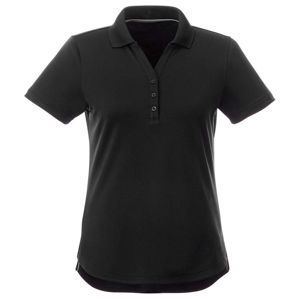 The custom logo Elevate Women's Black Otis Short Sleeve Polo offers stylish comfort and a fashionable fit. Available in nine different colors, there is certain to be a color which goes perfectly with your company logo. Features of this double knit polo shirt include breathable fabric with moisture wicking capabilities, three button closures, snag resistant fabric and built-in UV protection (UPF 40+). The shaped seams and tapered waist make this women's polo shirt a must-purchase item. Hand this attractive logoed polo shirt out at corporate events, such as trade shows and recruiting events, to please the recipients and to get your company name out to the public.Corresponding Men's Style: Elevate Men's Black Otis Short Sleeve Polo