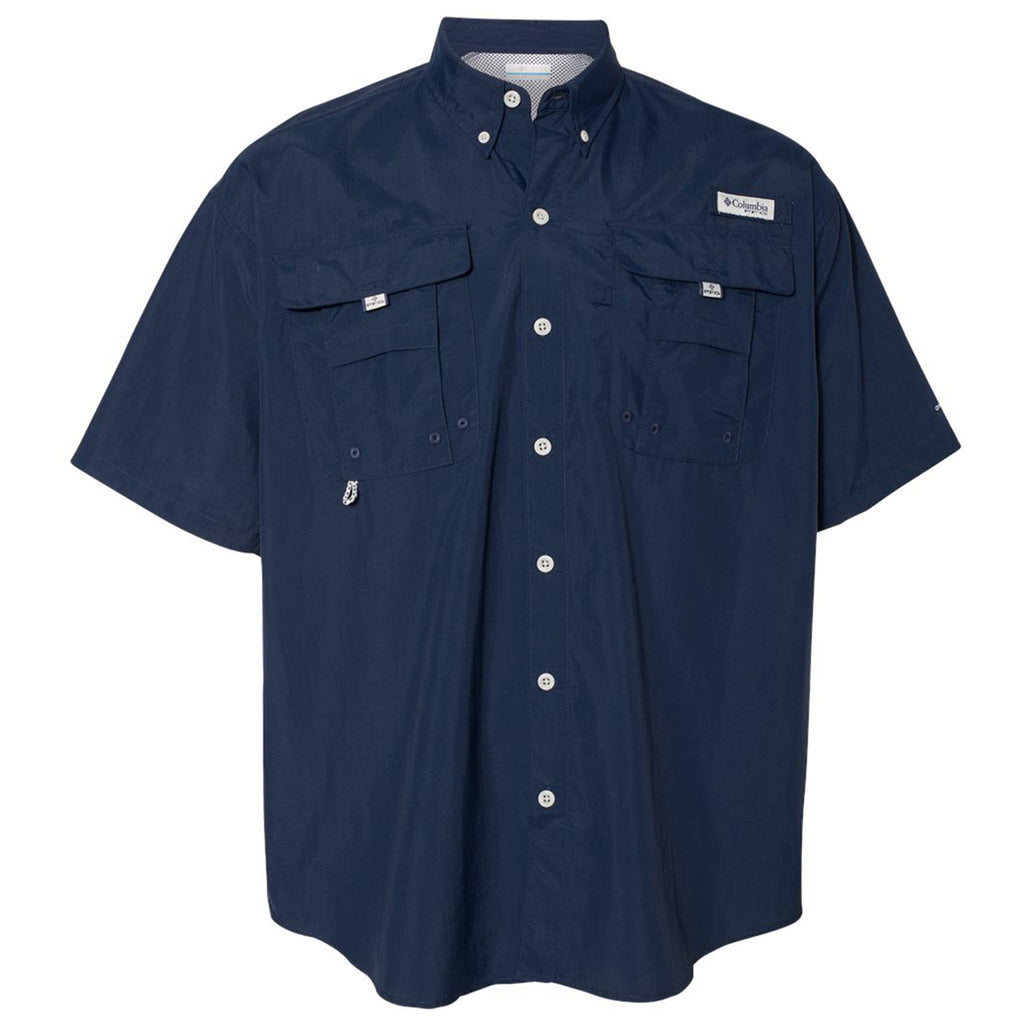 A custom Columbia Men's Collegiate Navy PFG Bahama Short Sleeve Shirt is ready for work, play and everything in between. The Tactel nylon shirt with quick dry technology and UPF 50 sun protection has a rod holder and utility loop so you can work all morning and fish the afternoon away with ease. Great for outdoorsmen of all types.This product cannot ship outside of the United States.