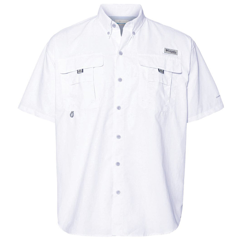 A custom Columbia Men's White PFG Bahama Short Sleeve Shirt is ready for work, play and everything in between. The Tactel nylon shirt with quick dry technology and UPF 50 sun protection has a rod holder and utility loop so you can work all morning and fish the afternoon away with ease. Great for outdoorsmen of all types.This product cannot ship outside of the United States.