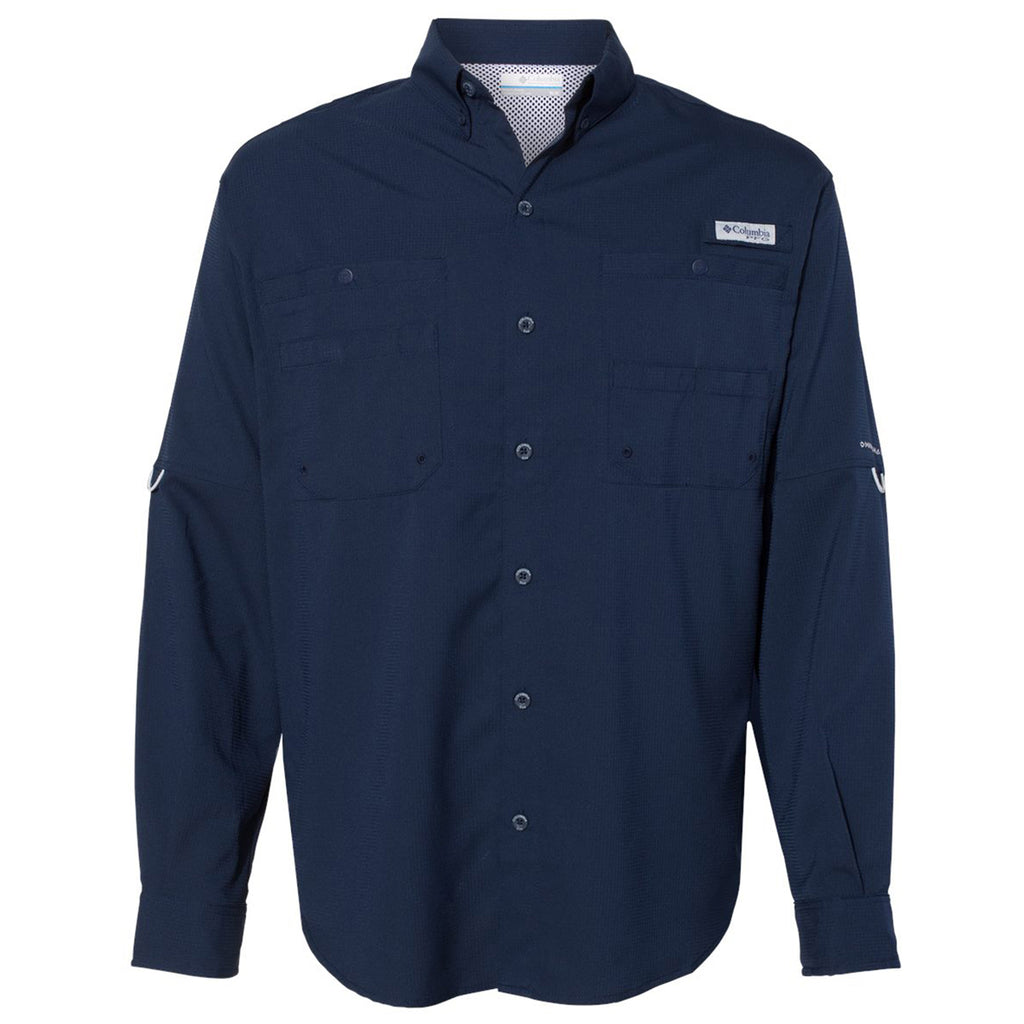 Columbia Men's Collegiate Navy PFG Tamiami Long Sleeve Shirt