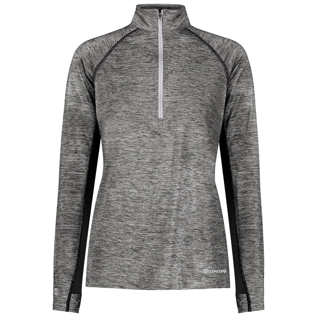Holloway Women's Black Heather Electrify Coolcore 1/2 Zip Pullover