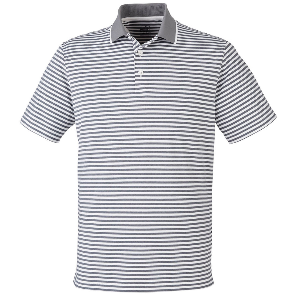 Try a custom logo for the Puma Golf Men's Quiet Shade Mattr Feeder Polo with a striped design. Made of mostly recycled materials with moisture-wicking and UV-resistant 40+ UPF, this polo will keep you looking and feeling great. The four-way stretch means your backswing will not be affected as you enjoy an extra round or set. Place an order today.