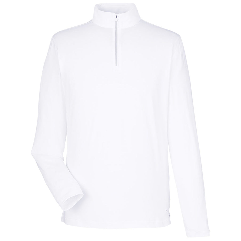 Add embroidery to the Puma Golf Men's Bright White You-V Quarter-Zip to create a versatile look that can be enjoyed year-round. The polyester and elastane blend is breathable and moisture-wicking, making it great for outdoor activities like golf, tennis, or hanging with friends. Place an order right away before these sell out.This product can only ship within the United States and Canada.