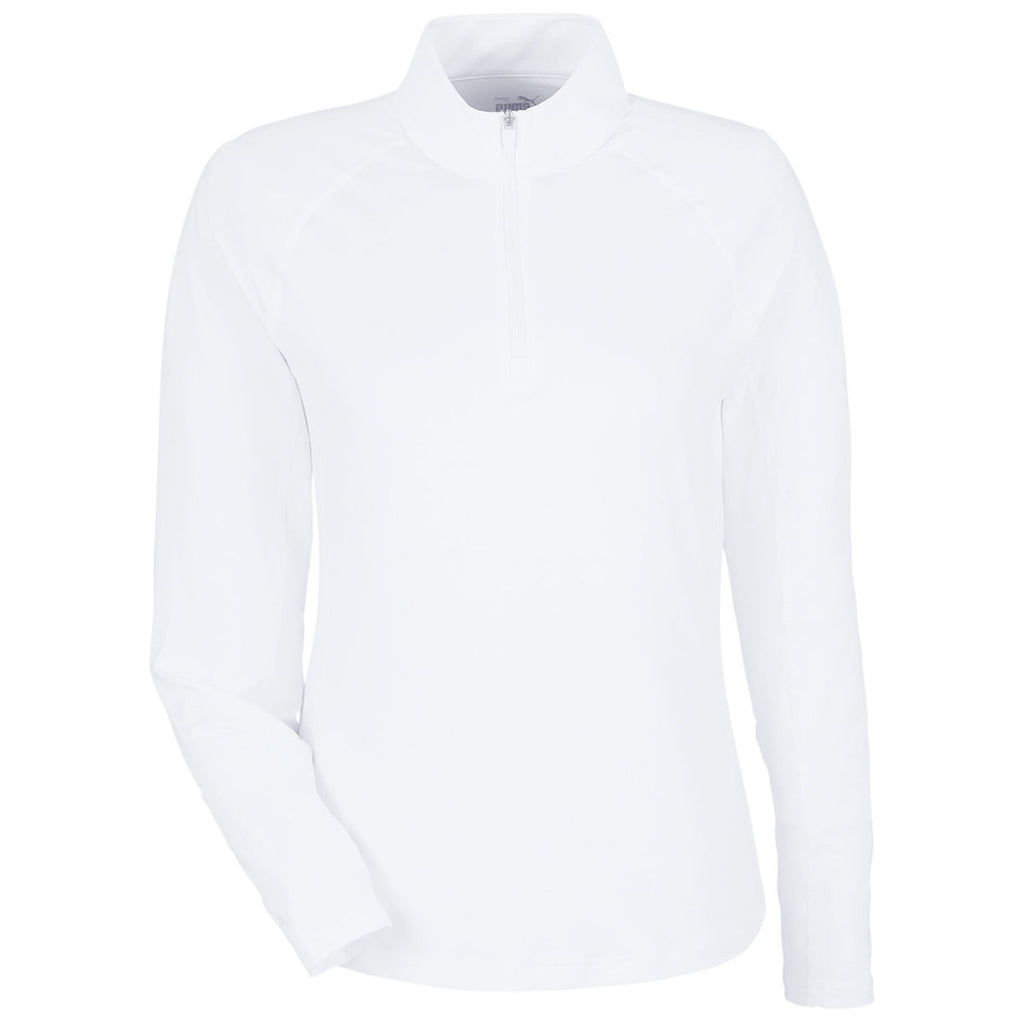 Enjoy the sleek look and feel of a custom Puma Golf Women's White Glow You-V Quarter-Zip. This streamlined quarter-zip is great for layering over workout gear when commuting or just hanging out with family and friends. The easy grab-and-go design means you can be out the door and ready to start your day.This product can only ship within the United States and Canada.