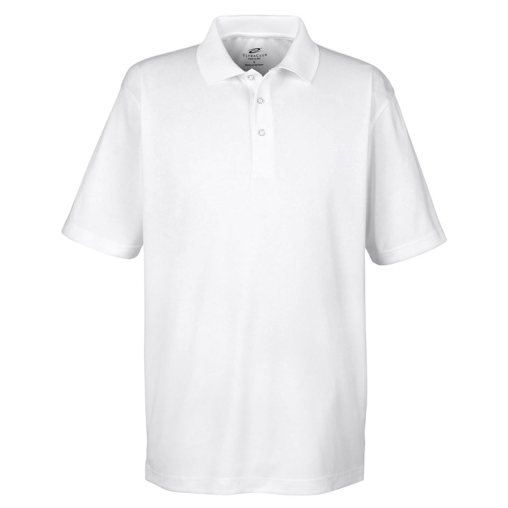 Hemmed sleeves and the drop tail separate the UltraClub Men's White Cool & Dry Sport Polo from the polo pretenders. The chic design elements make the sport polo perfect for entertaining friends, as well as wearing out for a night on the town. Enjoy a relaxed fit that keeps you feeling great all night long. The knit collar and three-button placket complete the design elements for the elegant polo. Rugged 100% polyester mesh circulates air to keep the upper body dry. Moisture wicking technology quickly absorbs and removes sweat to cool the skin. Attach your corporate logo to gain more exposure for your company in the community.Corresponding Women's Style: UltraClub Women's White Cool & Dry Sport Polo