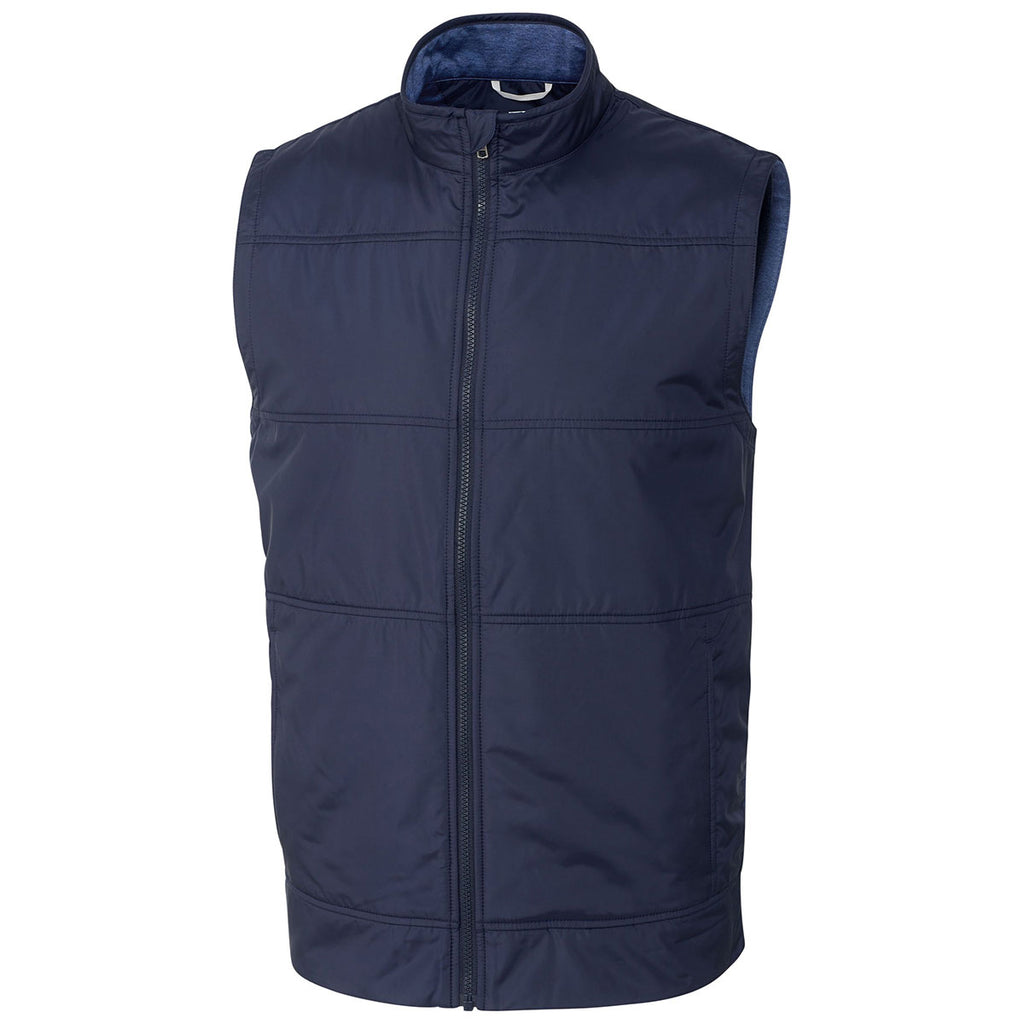 With the Cutter & Buck Men's Liberty Navy Tall Stealth Full Zip Vest, comfort and style is yours for the taking. Select your favorite color from attractive options and add your company logo to the front. The vest offers many wonderful features such as an 89% polyester/11% spandex blend fabric, CB DryTec UPF 50+ material, mock neck full zip design, zippered pockets, and banded straight hem. Order this item for the loyal employees on your team. They are sure to wear it often and it's also an excellent way to get your company name out to the masses!Highlights
