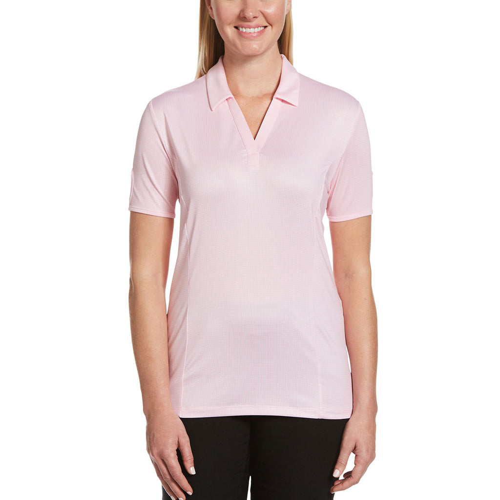 Design embroidery for the Callaway Women's Orchid Pink Gingham Polo for a unique employee uniform that everyone will love. The soft gingham pattern on this V-neck creates a soft and approachable look that can serve as corporate apparel or every day wear. Add a custom logo to use at golf events for separate teams. Created from a polyester rich jersey blend, this polo wicks moisture away from the skin and offers a UPF 50+ to keep you safe from the sun.