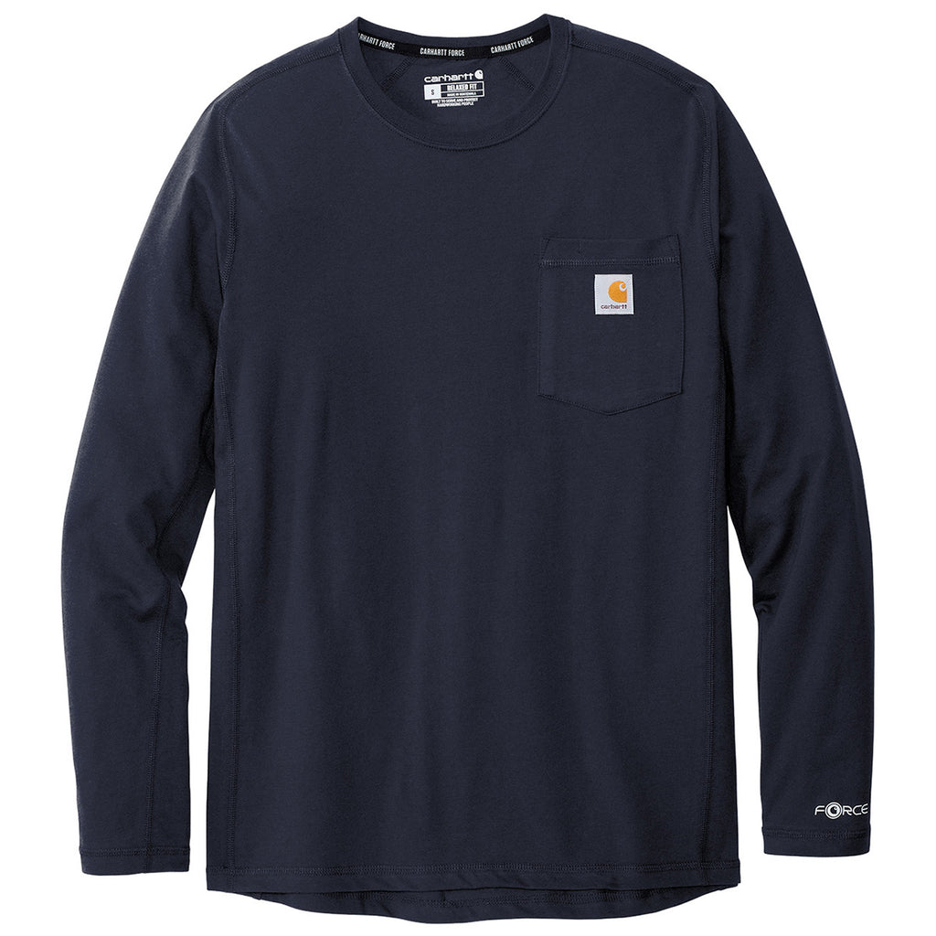 Carhartt Men's Navy Force Long Sleeve Pocket T-Shirt with a corporate logo is the ideal option for those who work the toughest of jobs. This rugged pocket tee fights sweat and is built for a challenge. Perfect for contractors, landscapers, farmers, and all who work their hardest. Place an order right away before these sell out.This product can only ship within the United States and Canada.