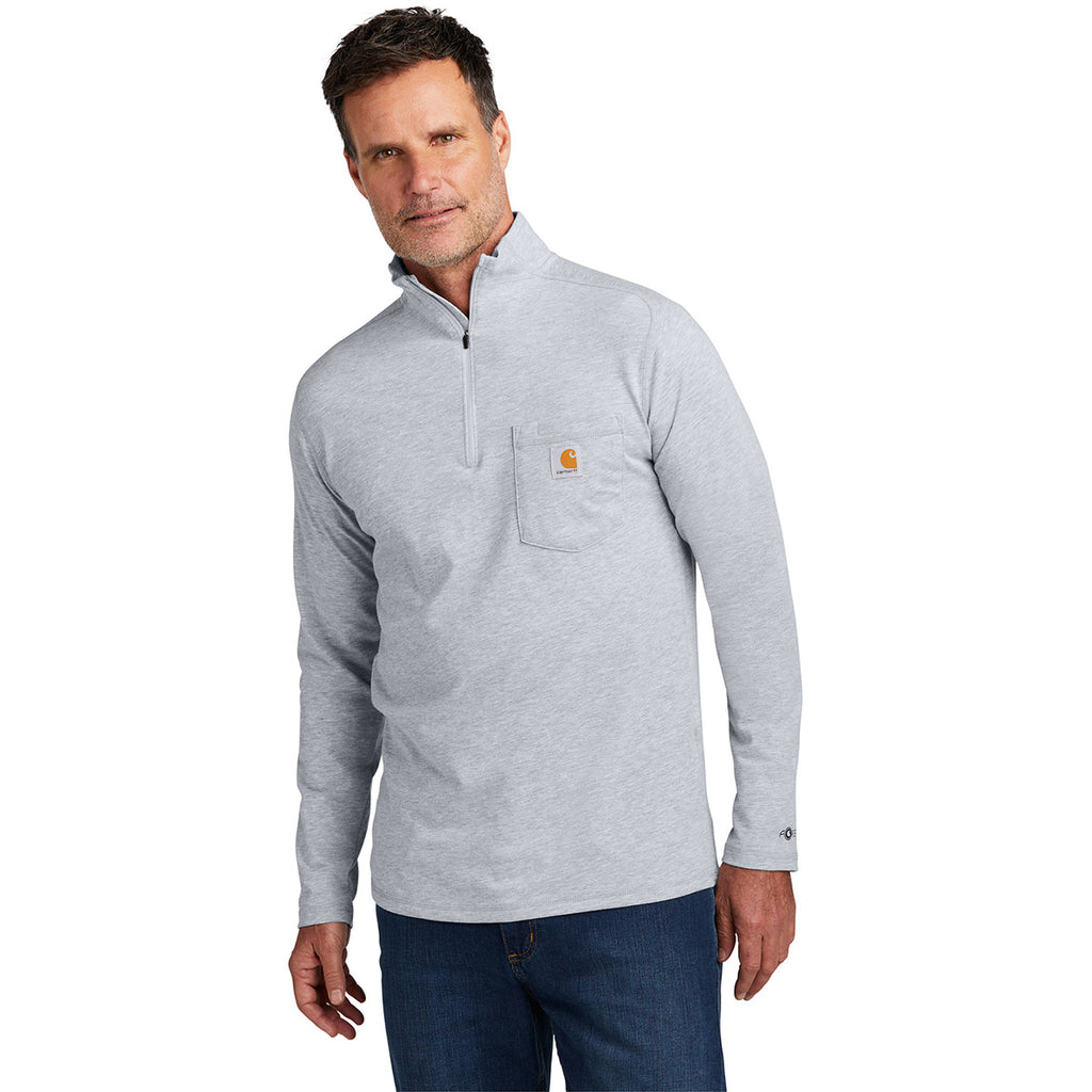 Carhartt Men's Heather Grey Force 1/4-Zip Long Sleeve T-Shirt
