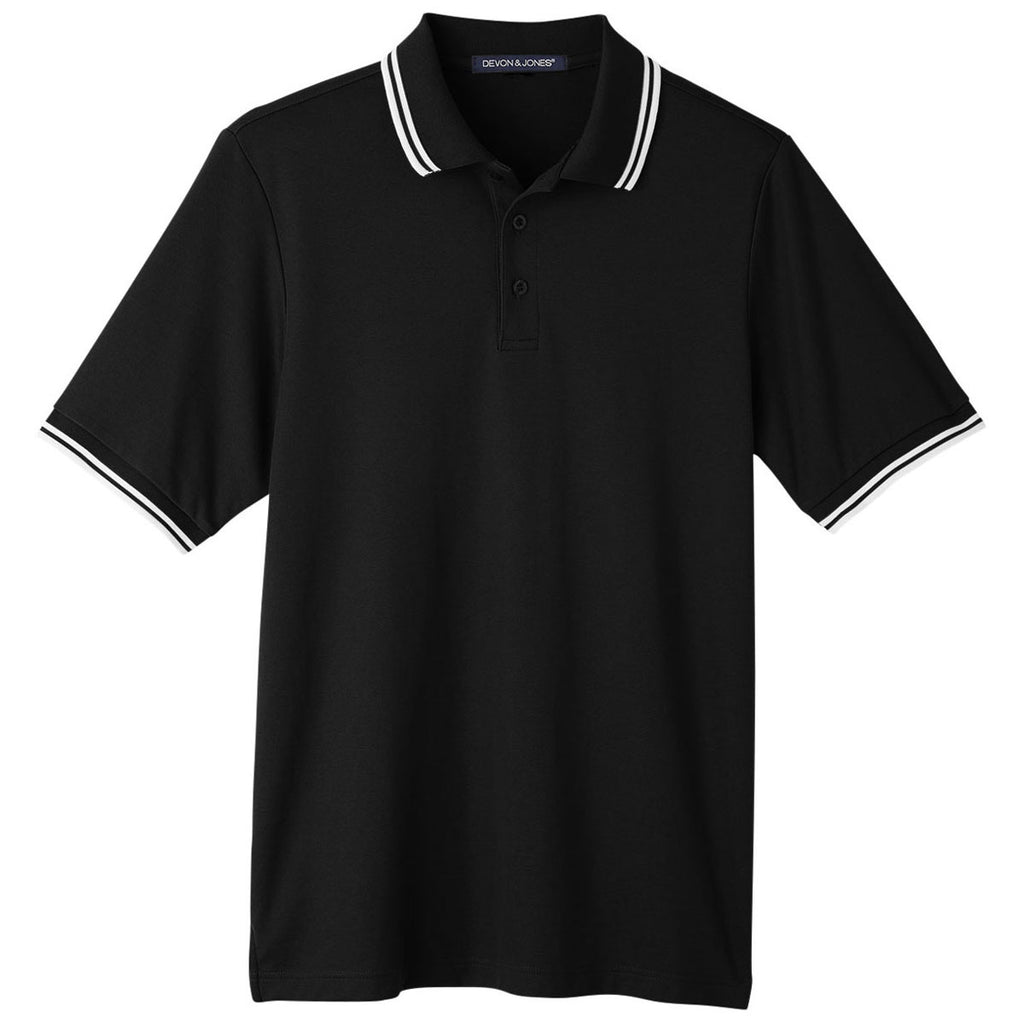 Devon & Jones Men's Black/White CrownLux Performance Plaited Tipped Polo