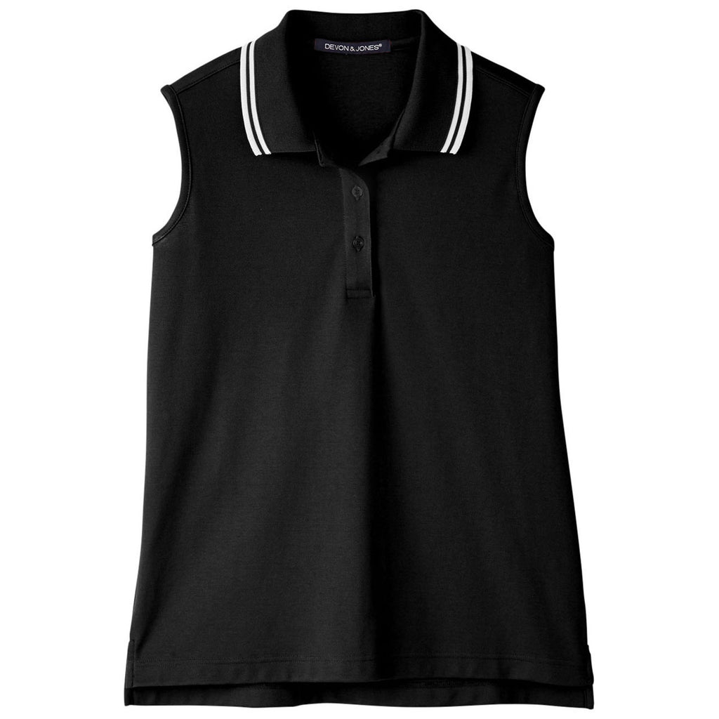 Devon & Jones Women's Black/White CrownLux Performance Plaited Tipped Sleeveless Polo