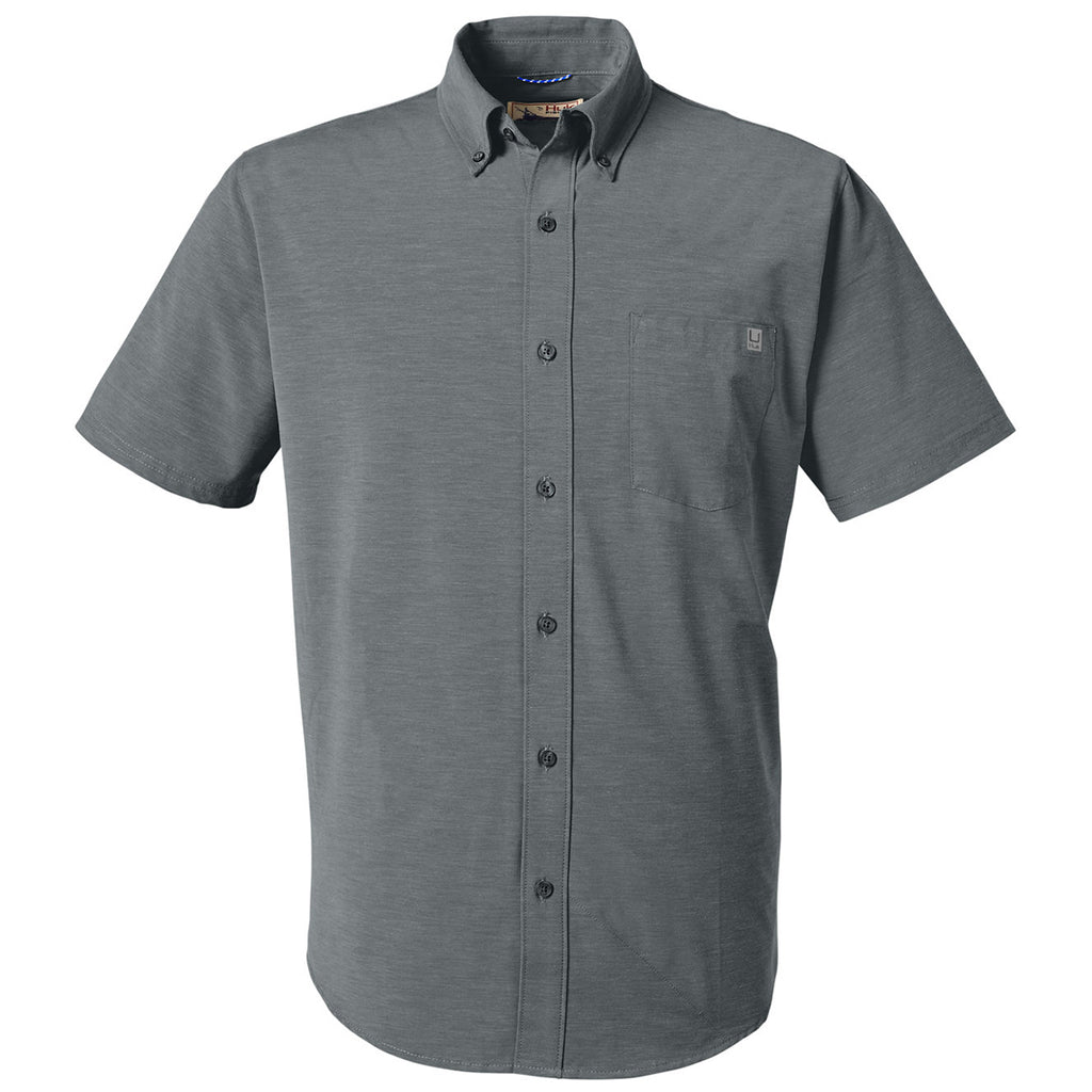 Add a corporate logo to the HUK Men's Volcanic Ash Kona Solid Short Sleeve Shirt for the perfect workwear for many professions. This tough shirt has 4-way stretch and a UPF of 30, with an interior eyewear wipe for convenience. Create your own uniforms for mechanics, salespeople, or even servers. Create something today.Highlights