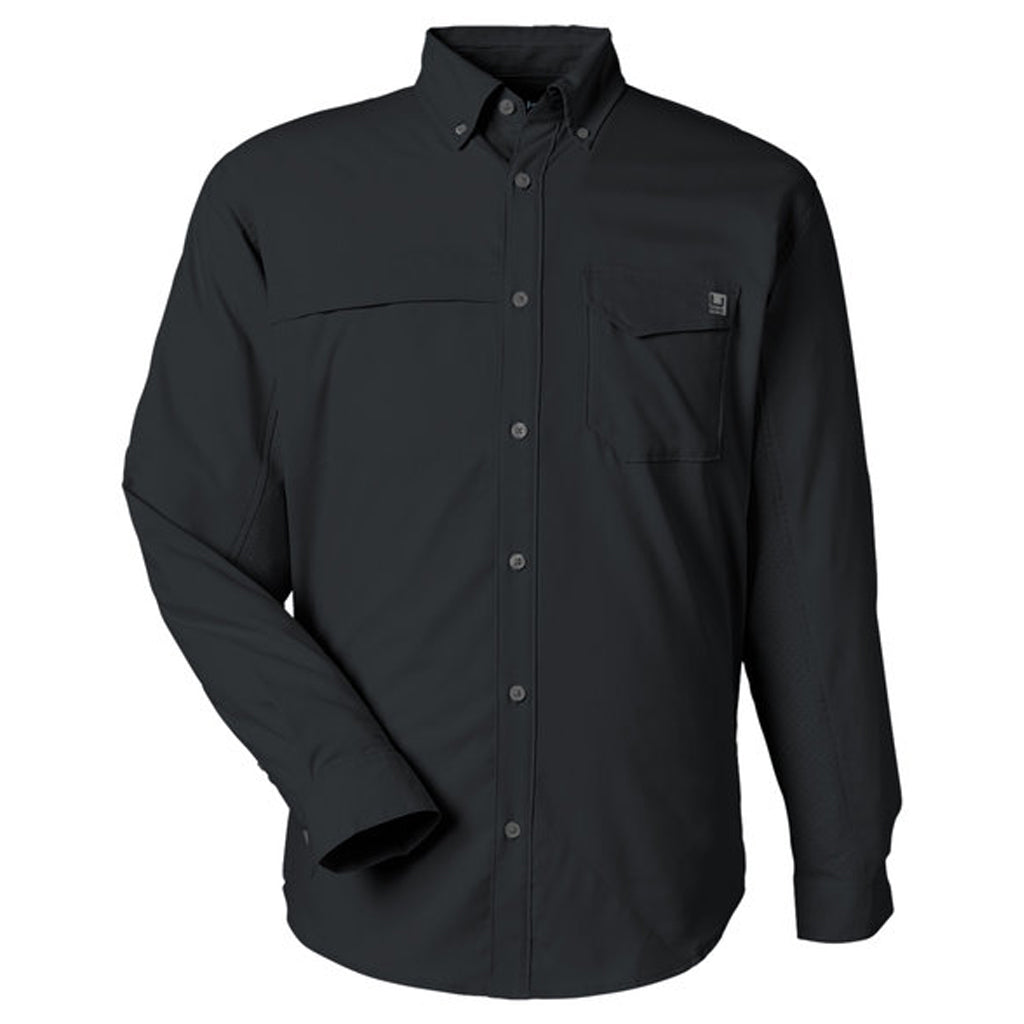 HUK Men's Black Tide Point Long Sleeve Shirt