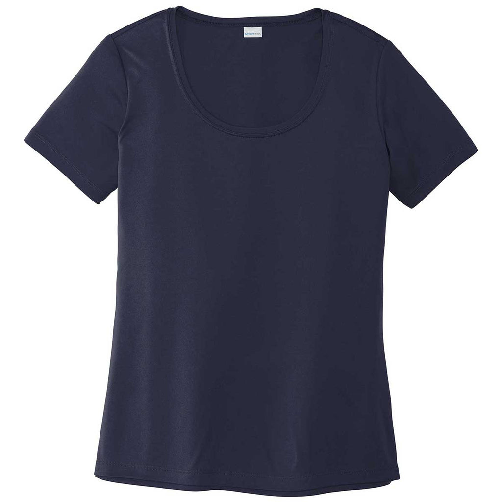 A simple tee is highly versatile and the Sport-Tek Women's True Navy Posi-UV Pro Scoop Neck Tee is no exception. Whether wearing alone or as part of a layered look, this 100% polyester interlock tee offers PosiCharge technology and exceptional UV rating. Add a custom screen print to use these tees as a uniform for team events or a company uniform for those that need to be highly recognizable. An ideal end of the year gift for all employees or as a gift for meeting a sales goal. This must have tee will fit into nearly every wardrobe and is comfortable enough to wear again and again. Place an order today to have these on hand as gifts, incentives, or uniforms.Corresponding Men's Style:Sport-Tek Men's True Navy Posi-UV Pro Tee