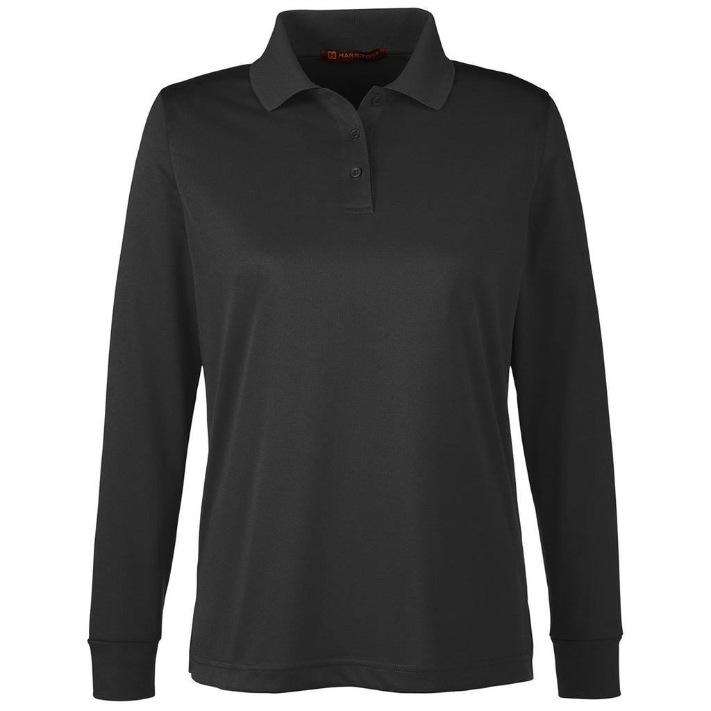 Harriton Women's Black Advantage Snag Protection Plus Long Sleeve Polo