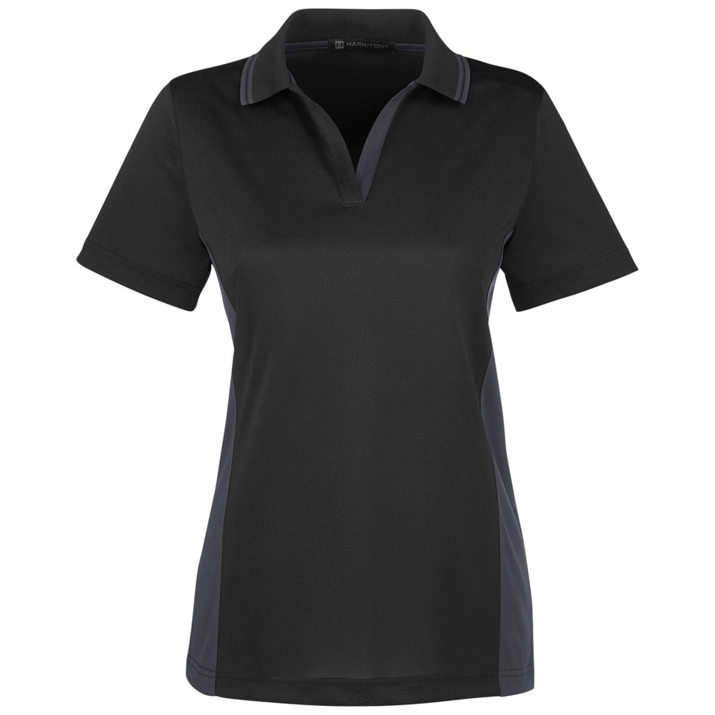 Harriton Women's Black/Dark Charcoal Flash Snag Protection Plus Colorblock Polo