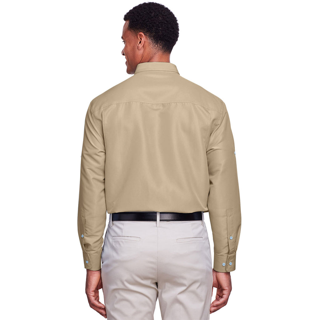 Harriton Men's Khaki Key West Long-Sleeve Performance Staff Shirt