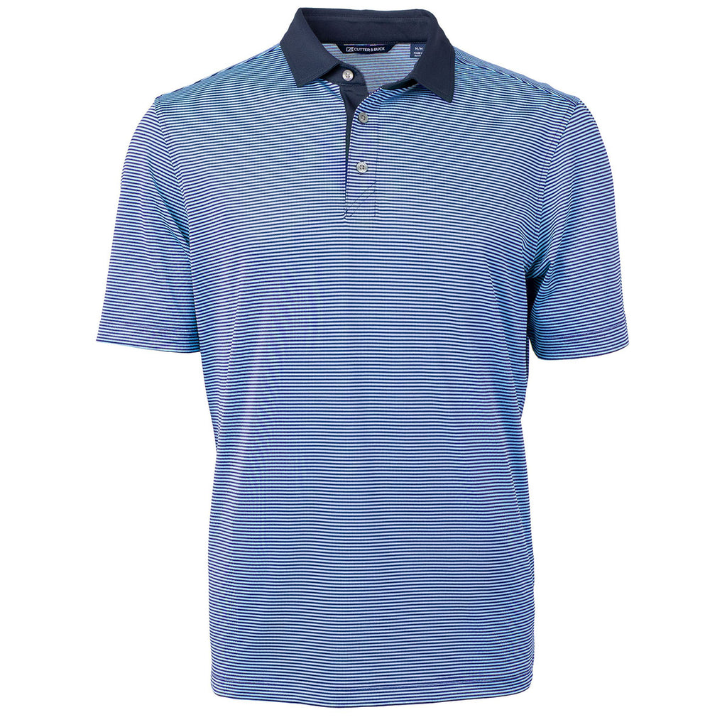 Cutter & Buck Men's Atlas/Navy Blue Virtue Eco Pique Micro Stripe Recycled Tall Polo