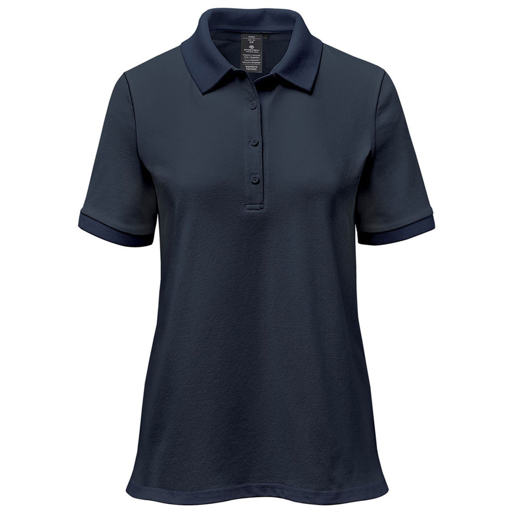 Stormtech Women's Navy Ferrera Short Sleeve Polo with corporate embroidery creates a versatile look that can be dressed up for the boardroom, worn alone as a uniform, or used for a day of activity like playing tennis or golf. The super-soft polo with a UPF of 50+ is ready for whatever your schedule may hold.Corresponding Men's Style: Stormtech Men's Navy Ferrera Short Sleeve Polo