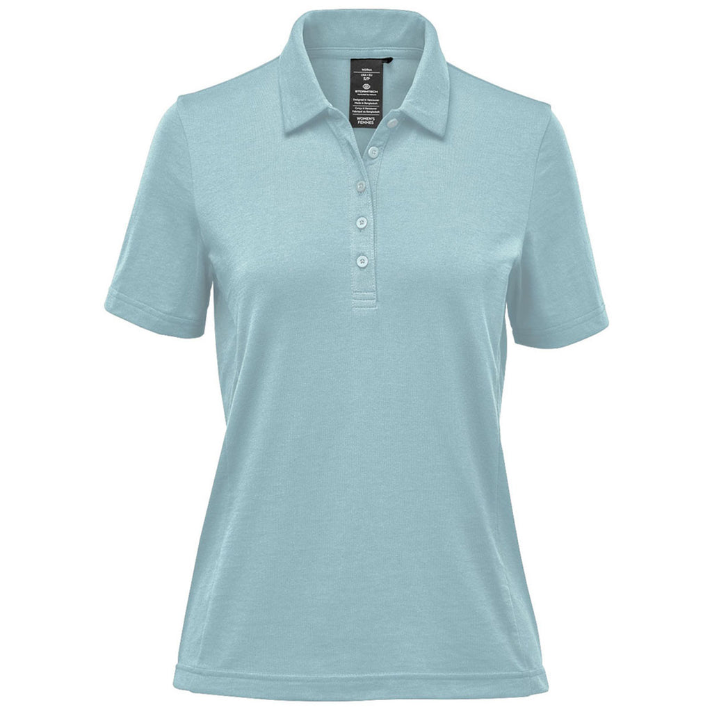 Stormtech Women's Ice Blue Settebello Short Sleeve Polo with a corporate logo is a fun and simple way to create a versatile look for yourself and your employees. This polo, with set-in sleeves and a self-fabric collar, can be worn as part of a uniform, with a power suit, or to chill with friends. The possibilities are only limited by your schedule.Corresponding Men's Style: Stormtech Men's Ice Blue Settebello Short Sleeve Polo