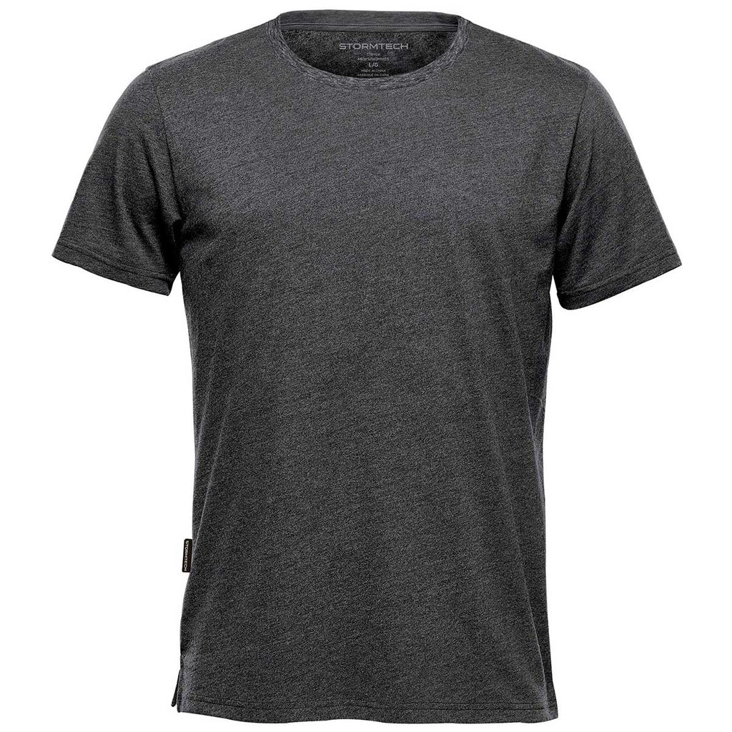 Enjoy a custom classic with the Stormtech Men's Graphite Heather Torcello Crew Neck Tee. This basic crewneck is well made to stand up as workwear, but simple enough to allow your custom logo to stand out and advertise for your company. Simplicity at its finest is found in this rib crew neck that can be worn alone or paired with a hoodie for cold weather. Perfect for a good workout, a day with friends, or a weekend at the office. Place an order today in the design and color of your choosing to have these on hand to meet your needs.Highlights