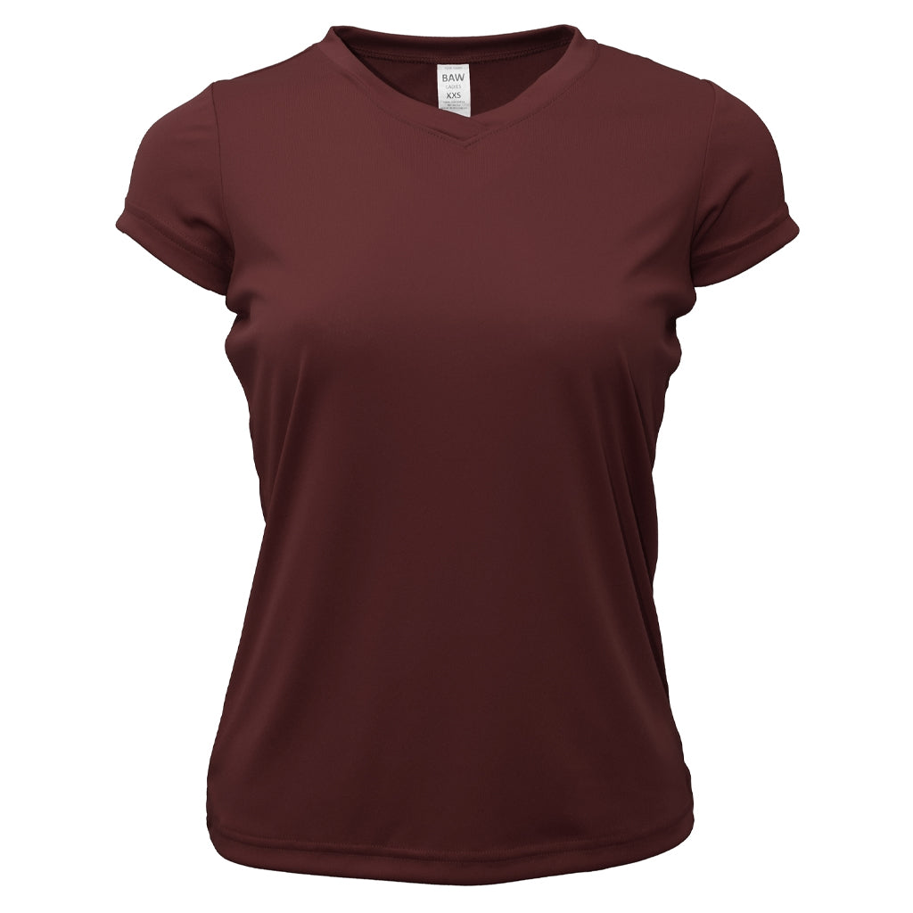 No one could accuse you of not selecting the right color of women's T-shirt for your company sponsored promotion! The BAW Women's Maroon Xtreme Tek T-Shirt comes in a variety different shades. Just imagine your custom logo on the front of each one. Your promotion could be the gold at the end of the proverbial rainbow. This ladies' tee is available in sizes 2XS to 3X, and the material is so comfortable and breathable that recipients will wear it every chance they get. This is a tee that will not shrink and also offers UV protection. Whether you're having an anniversary celebration or gift with purchase, you just can't go wrong!Corresponding Men's Style: BAW Men's Maroon Xtreme Tek T-Shirt