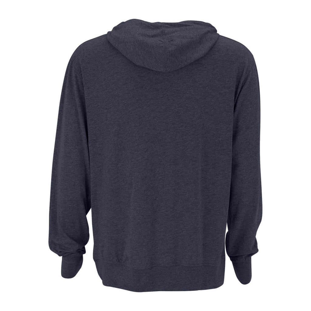 The jersey-knit body and jersey-lined hooded neck produce unsurpassed comfort for the company logoed Vantage Men's Navy Heather Lightweight Jersey Knit Pullover. Wear the pullover over a polo or put it on under your favorite Vantage flannel shirt. Rugged polyester makes the popular pullover the ultimate outer layer for active professionals who enjoy camping and backpacking. Super smooth cotton holds in body heat to create a natural source of warmth that overcomes Old Man Winter's worst icy blasts. Add a custom logo on the large imprint area to gain more attention for your company at business conferences.Highlights