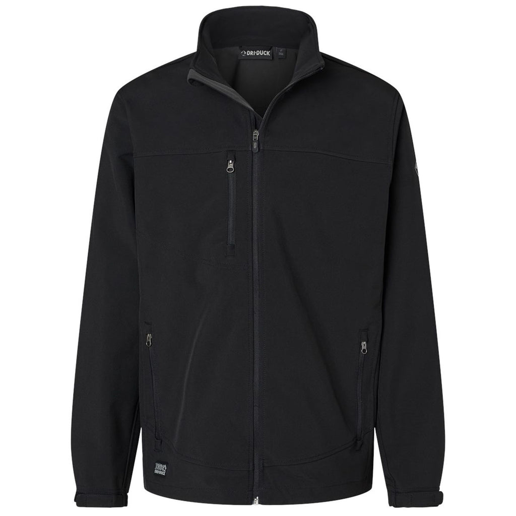 Dri Duck Men's Black Motion Soft Shell Jacket with embroidery is a unique way to create corporate apparel that can go from the office to home with ease. The polyester rich spandex blend has a soft interior lining with full front zip front, The wind and water resistant jacket is great for those damp, chilly days as it offers protection from the elements while commuting or running errands. Add a company logo to use as part of uniforms for those who have to work outside the office, yet still need to represent the company. Zippered right chest and hand pockets, adjustable cuffs, and a media port make this shell jacket a convenient option nearly every day. Place an order today.