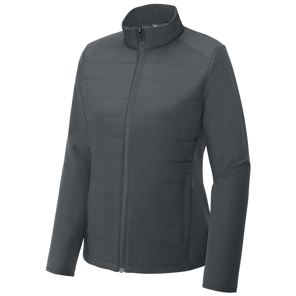 Corporate apparel meets performance with the Sport-Tek Women's Iron Grey Teknical Hybrid Jacket. Lightweight insulation and stretch fabric create warmth and flexibility, while a clean design keeps it professional. Add your custom logo for a branded jacket that transitions seamlessly from office to outdoors. Ideal for employees, clients, or active team members.Corresponding Men's Style: Sport-Tek Men's Iron Grey Teknical Hybrid Jacket