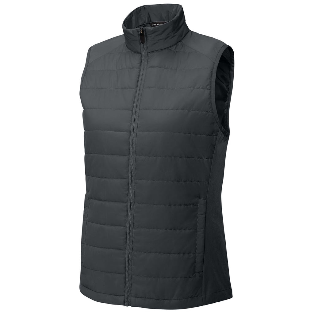 Corporate style blends with comfort in the Sport-Tek Women's Iron Grey Teknical Hybrid Vest. Lightweight insulation offers just the right amount of warmth, while stretch panels provide flexibility. Add a custom logo to create a versatile branded vest ideal for outdoor events, corporate uniforms, or seasonal gifts that reflect professionalism and practicality.Corresponding Men's Style: Sport-Tek Men's Iron Grey Teknical Hybrid Vest