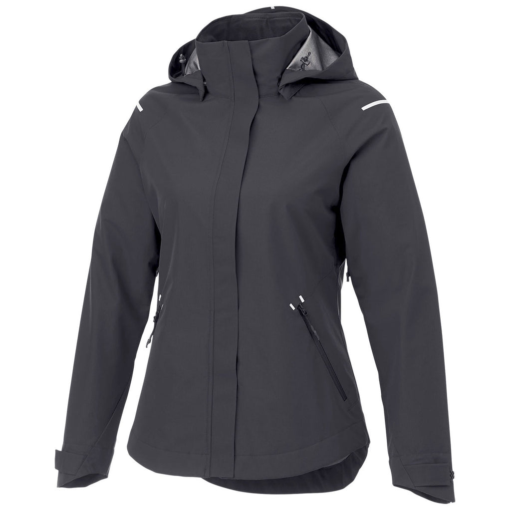 Add a custom logo to the Elevate Women's Black Gearhart Softshell Jacket to create a look that will be ready to go wherever you want. This ultra-lightweight jacket is waterproof and breathable with critical seam sealing and a snap off hood. The three layer construction offers soft brushed tricot against your skin and a sleek outer layer to keep you dry. Create rain gear for any occasion with a little something extra like a custom logo. Try a company logo to use as employee apparel or gifts for any occasion. Perfect for those who need something easy to layer and get on and off with the front zip and side zippered pockets.Corresponding Men's Style:Elevate Men's Black Gearhart Softshell Jacket