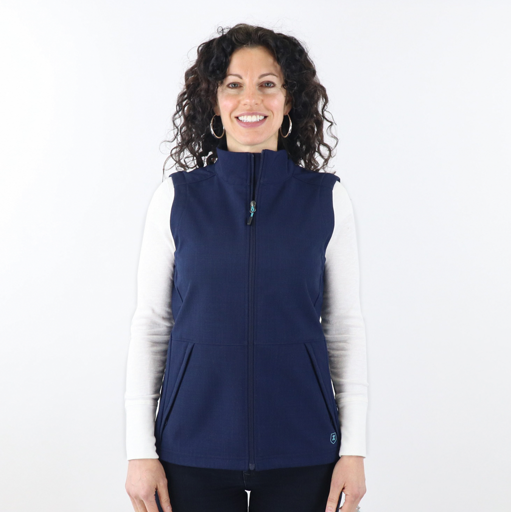 Looking for cool and eco-friendly corporate apparel for your team fast? Shop the Zusa Women's Navy Wanderlust Vest from Merchology! This custom sustainable vest layers effortlessly over your favorite layers, is great for transitioning from season to season, and was made with your adventures in mind. Stay warm and dry, the corporate women's Zusa vest features a waterproof and wind-resistant exterior, and your custom logo will have the spotlight on the chest or back yoke. Our favorite part? These logo-branded sustainable vests are made with 9 recycled water bottles for the women's style, and 11 recycled water bottles for the men's style and are able to ship out in just a few days. Stylish corporate merch and a great cause, fast; shop custom logo sustainable vests today with Zusa!
