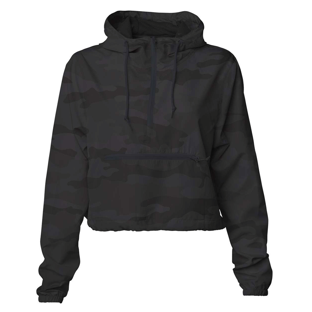 Independent Trading Co. Women's Black Camo Lightweight Pullover Crop Windbreaker