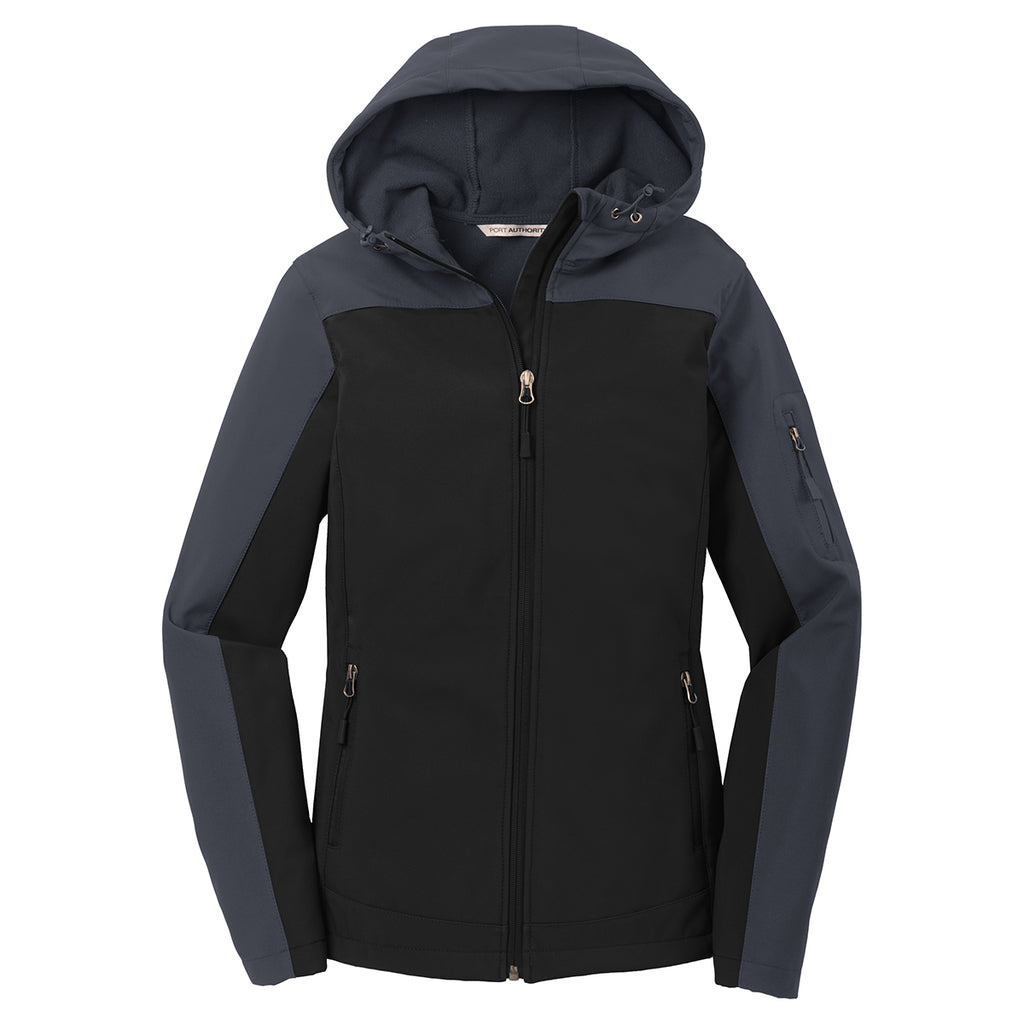 Port Authority Women's Black/Battleship Grey Hooded Core Soft Shell Jacket