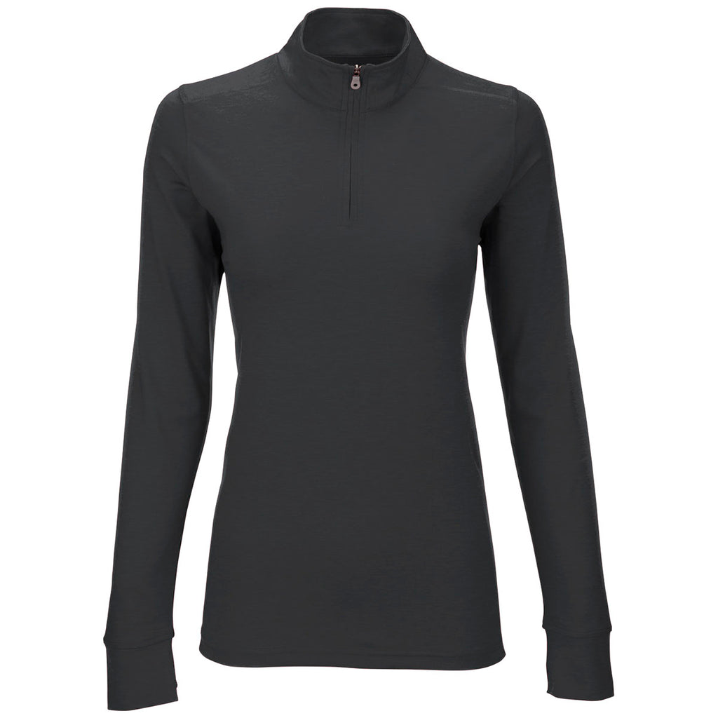 With forward shoulders in addition to front and back princess seams, the logoed Vansport Women's Dark Grey Zen Pullover defines the elegant appearance you need to get noticed at company sponsored golf tournaments. Moisture management technology makes the pullover perfect to wear when Mother Nature kicks up the humidity. The mostly polyester outerwear material resists rips and tears making it the perfect go to golf pullover for years to come. A little bit of spandex increases your arm movement flexibility to allow you more flexibility while teeing off. Attach a custom logo on the large imprint area and watch awareness of your company reach a new level.Corresponding Men's Style: Vansport Men's Dark Grey Zen Pullover