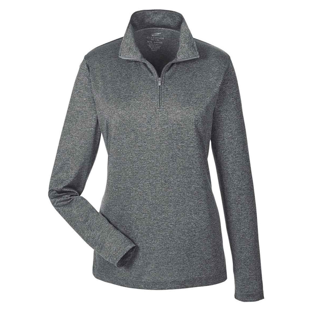 UltraClub Women's Black Heather Cool & Dry Heathered Performance Quarter-Zip